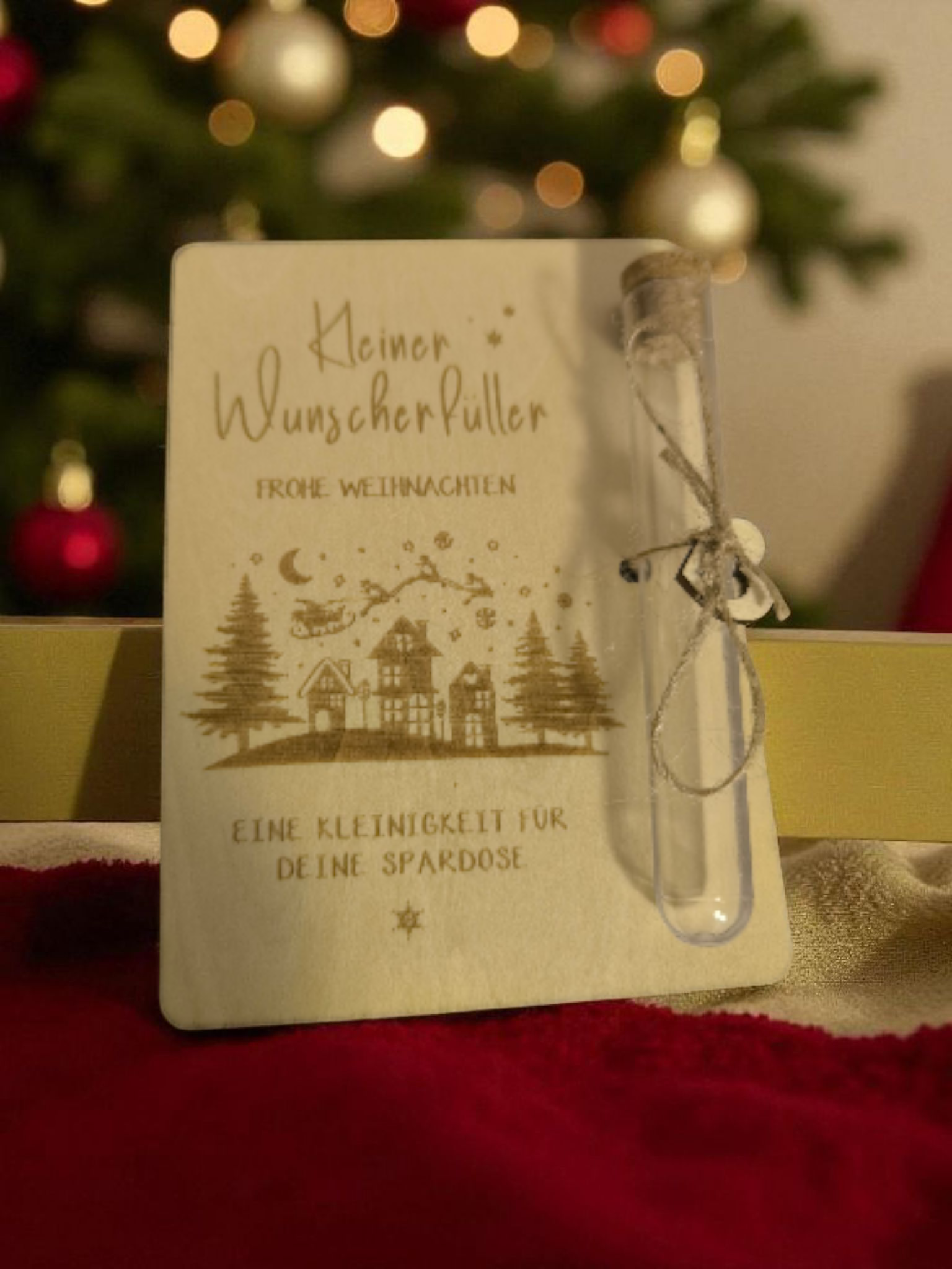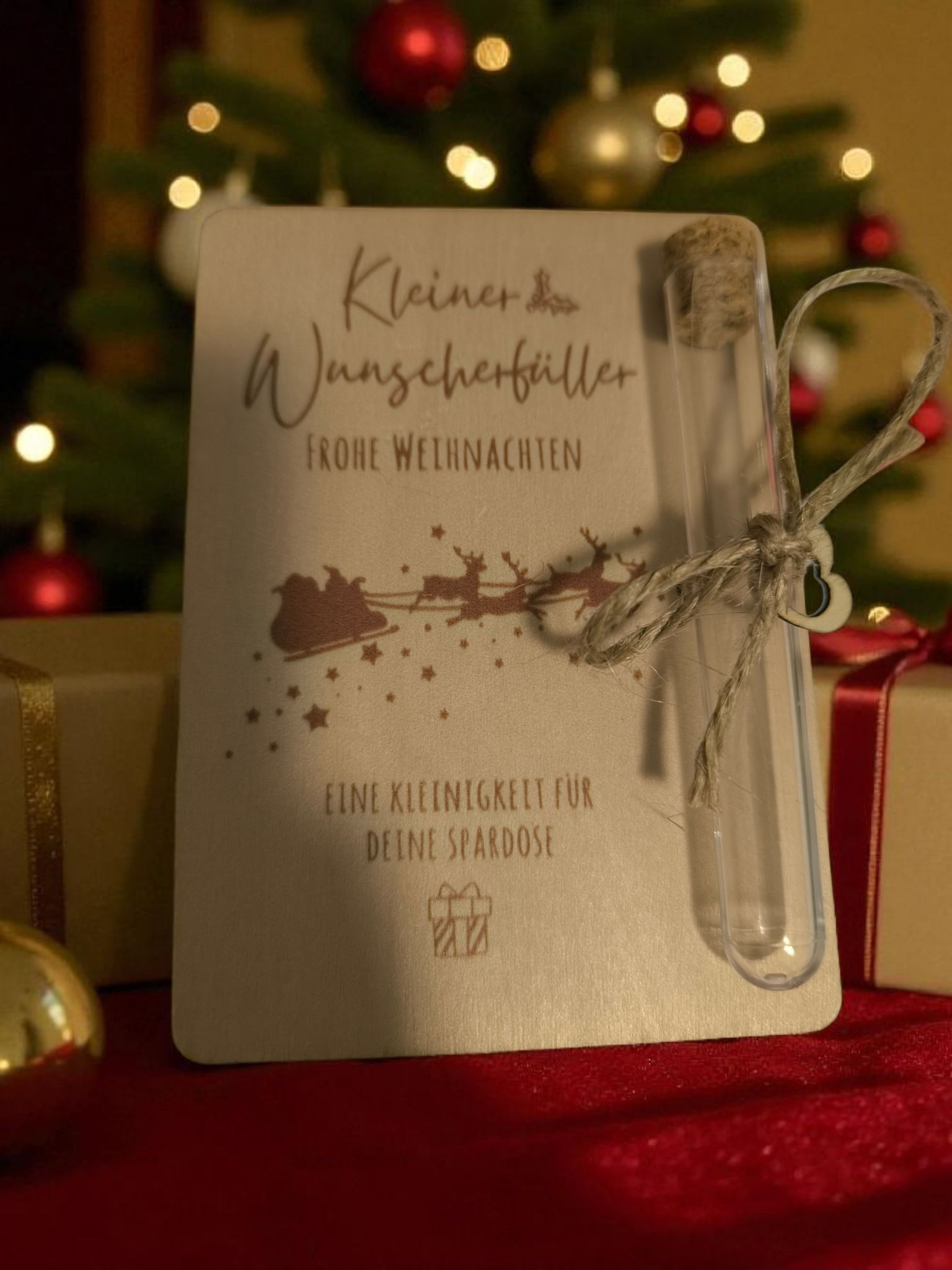 Dieses liebevoll gestaltete Geldgeschenk bringt garantiert ein Lächeln unter den Weihnachtsbaum. Festliche Details und sofort bereit verschenkt zu werden.